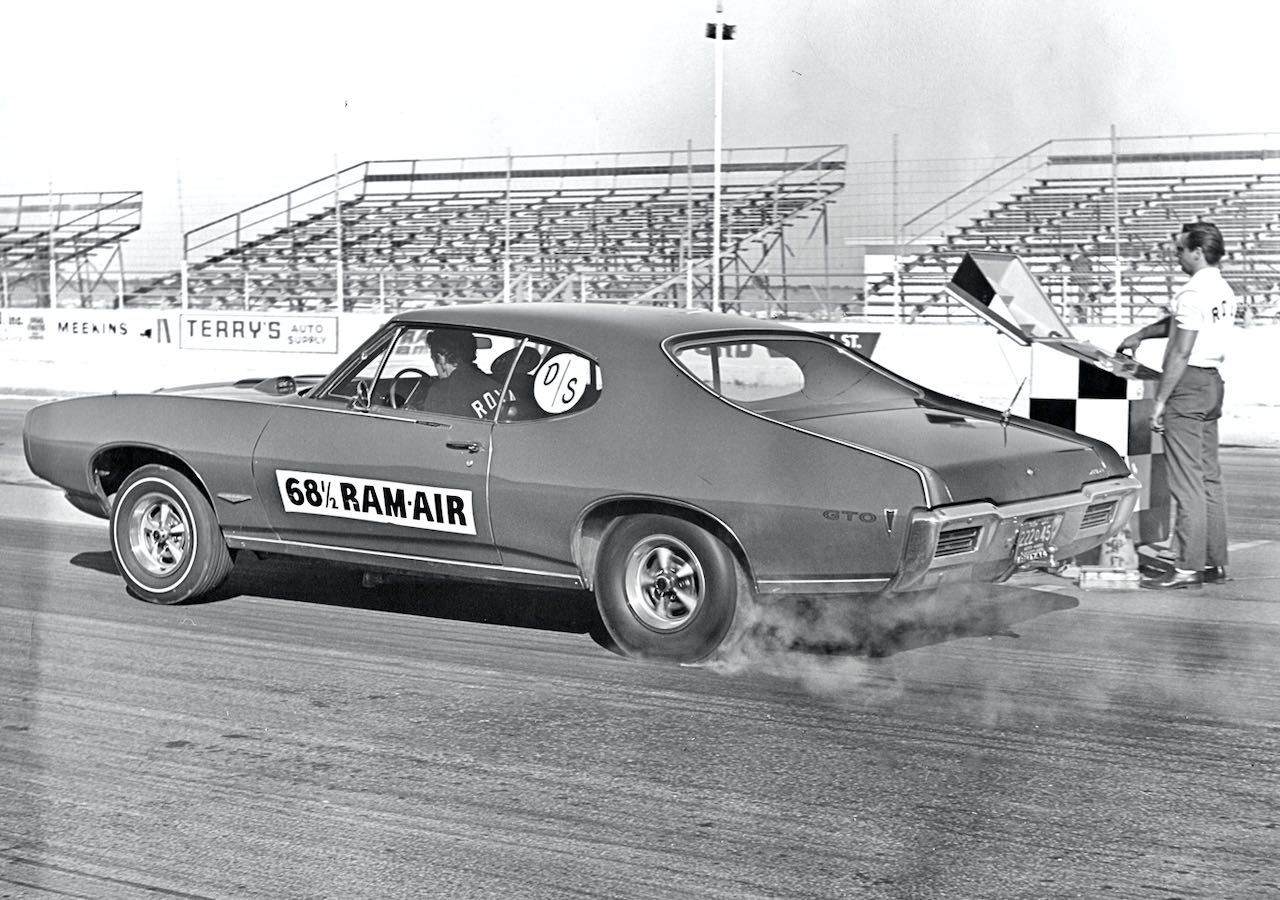 Midway through the model year, Pontiac released an optional 400-inch Ram Air II engine for GTO and Firebird applications. There were conflicting power ratings for this engine of 365, 366, and 370, depending on the release date and source. We covered the first 1968 ½ Ram-Air GTO Bobcat, undergoing testing at Miami Dragway. The story, written by Roger Huntington, appeared in the July 1968 issue of Hi-Performance CARS. Drag-prepped by Royal Pontiac and driven by Royal’s Milt Schornack at Miami Dragway, the ’68 PONTIAC RAM AIR GTO: THE GREAT ONE posted times in the high-12s at more than 110 mph on 7-inch cheater slicks.