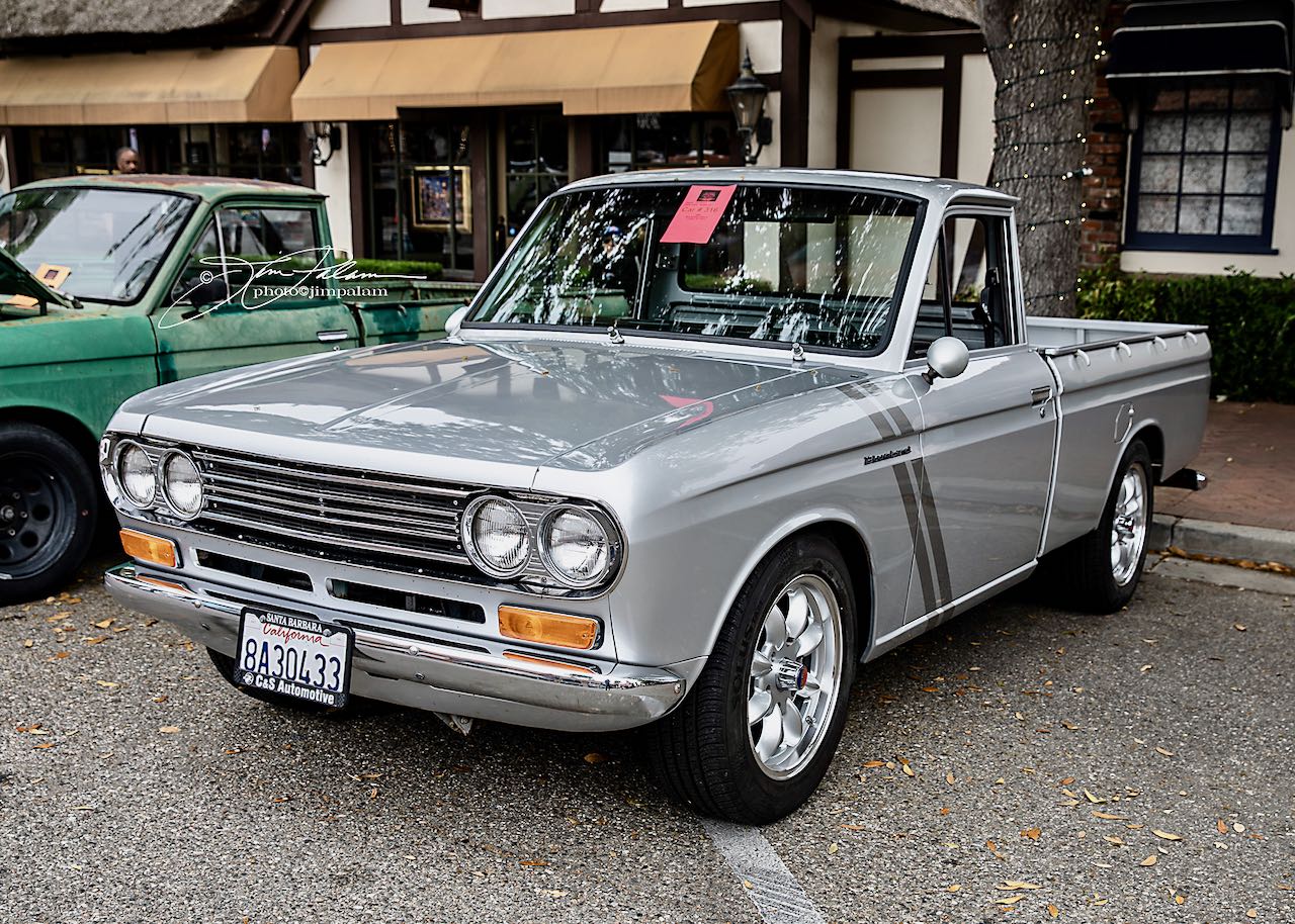 Please enjoy this 35TH ANNUAL SOLVANG DATSUN ROADSTER CLASSIC Gallery. Some of my favorites are the right-hand-drive ‘59 Datsun 1000 sedan sporting fat whitewalls that went on to win the “Pre-’63” category, Larry Knorr’s black ’67 ½ Datsun 2000, Steve Pharr’s time-capsule, custom ’73 Datsun 620 pickup with a ’73 Yamaha 175 Enduro in its bed, and Solvang UPS Store owner Christian Tokchia’s very rare, right-hand-drive ’71 Datsun 1600 SSS “Bluebird” Coupe. That’s Christian in the Datsun hat and sunglasses, standing next to his “I’m leaving everything as is…” pale-yellow Bluebird.