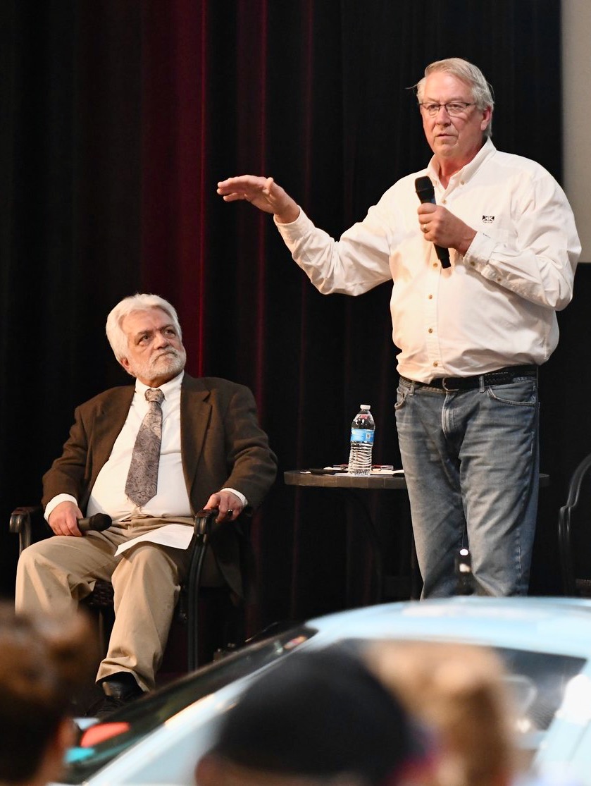 Gathered on the stage, were (L to R) Janos Wimpffen author (Time and Two Seats) and authority on sports car racing, Mike Teske, author (Ford Racing Century), archivist, and creator of the continuation Kar-Kraft/Ford Mark IV and Allen Grant, Shelby American driver. The entire event was ably moderated by Harry Hurst, author and curator of the Glory Days of Racing Facebook Group. Janos Wimpffen (forefront with microphone) kicked off the seminar by setting the stage for the world of international sports car racing Ford entered in the 1960s.