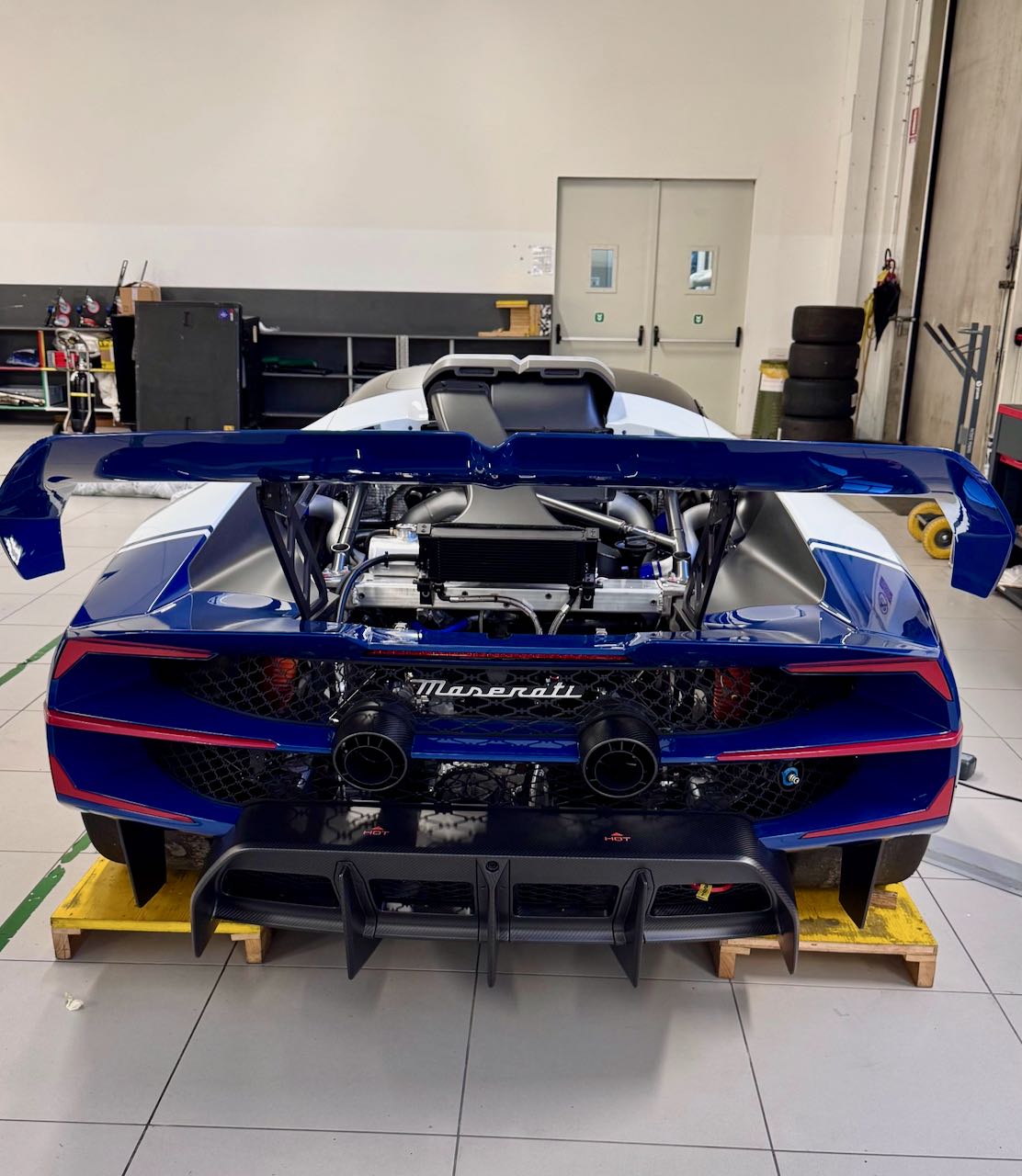 After dynamic testing at Maserati Corse’s test track, top, the livery was changed from #62 to Moss’ #33, and it was prepared for shipping to Florida.