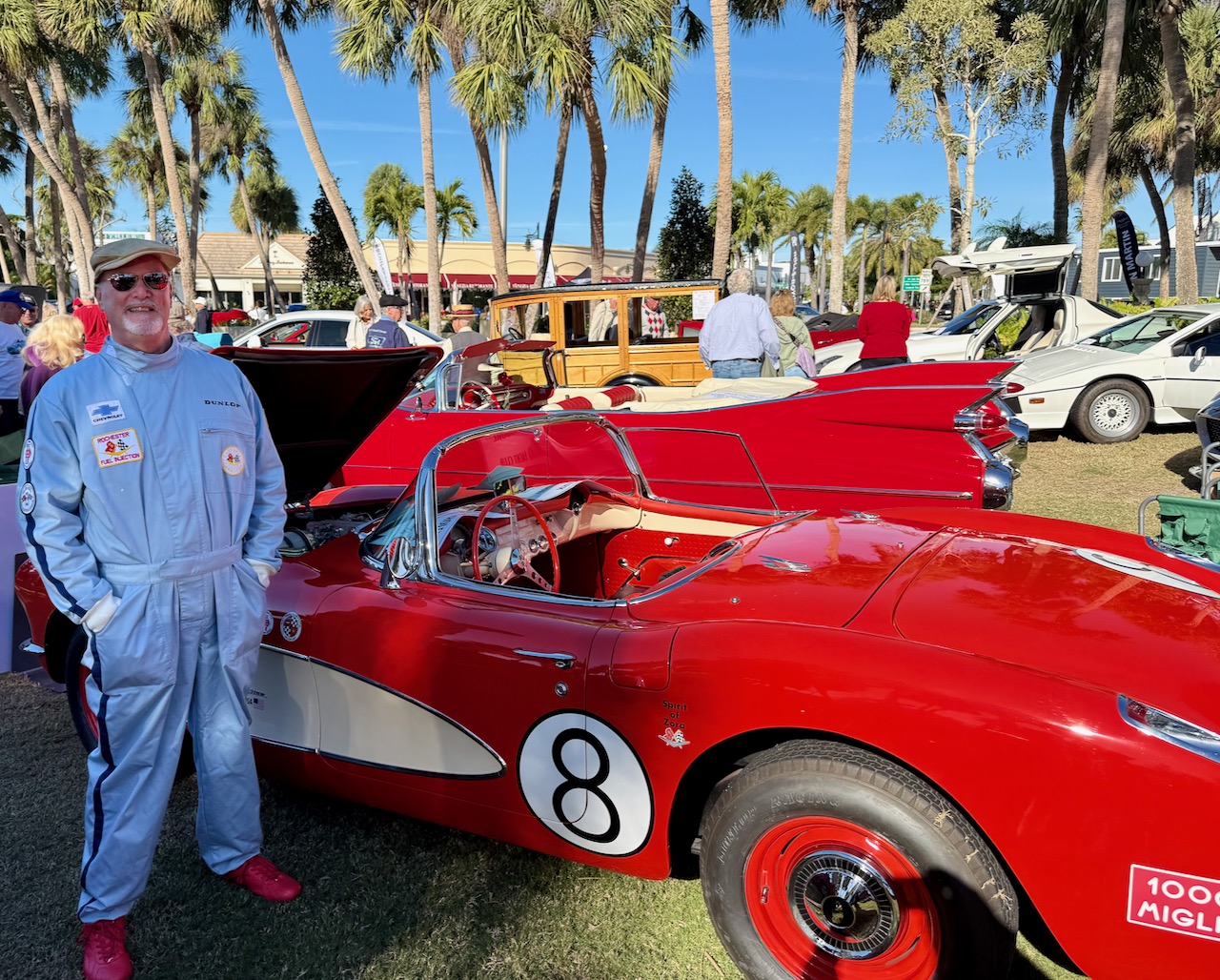 This year, there will be two entries from the prestigious Sarasota (FL) Café Racers: Howard Mintz and Marty Quadland will be competing in Howard’s ’06 Ford GT, and Mike Moss and Mark Gessler (experienced Mille Miglia competitor and automotive historian) will be in Mike’s TEAM ZORA USA ’57 Corvette Fuelie, The Spirit of Zora, which will also be running in the Mille Miglia “Storica” in Italy in June. It has an FIVA ID Card and was prepared for international competition by RM Motorsports, Wixom, MI. RM’s Bud Bennett will be Mike’s co-pilot.