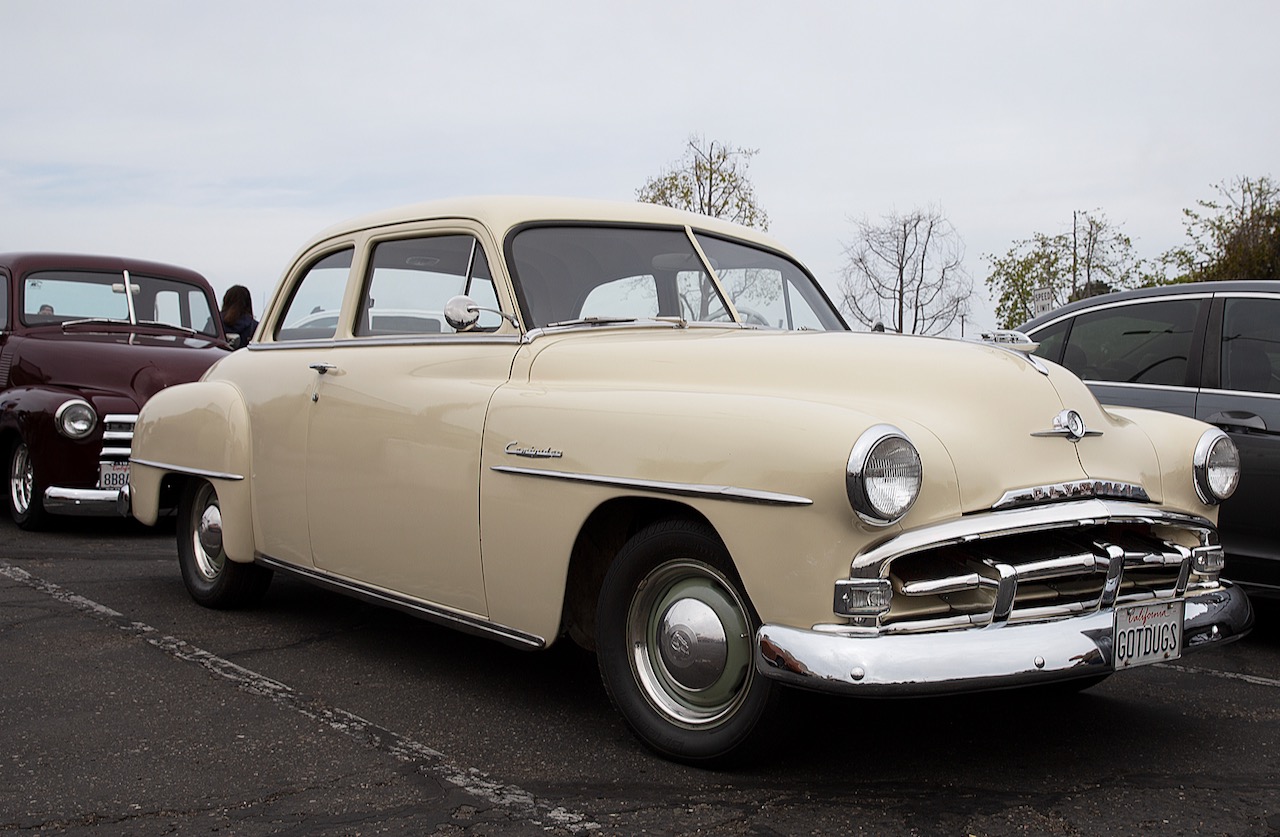 Since I was running late for an appointment back in Solvang I quickly grabbed shots of other noteworthy machines that had caught my eye. There was a beautifully upholstered, Candy-Tangerine ’57 Chevy, a plain-as-vanilla ’51 Plymouth Cambridge two-door, an arrest-me-red dune buggy, a mildly modified ’58 Chevy Apache pickup, a low-riding ’61 T-Bird and a ’74 T-Top Corvette sporting a plate that read UCIMBAD. Duly noted.