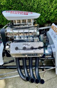 Supercharging was the earliest method used to squeeze more air into an engine than atmospheric pressure could provide naturally — a key to increasing an engine’s volumetric efficiency. Without the pumping action of the supercharger to increase the air pressure and density beyond the level of the atmosphere, the cylinders can’t fill to their maximum volume. But with the aid of a supercharger, they fill to the brim with a pressurized air/fuel charge. Thus, the cylinder displacement “grows” or is at least fully utilized. There is no doubt that SUPERCHARGING BOOSTS FREE HORSEPOWER! Pacers’ Tasmanian Devil Fuel Altered, with GMC/Roots blown & injected Hemi, above.